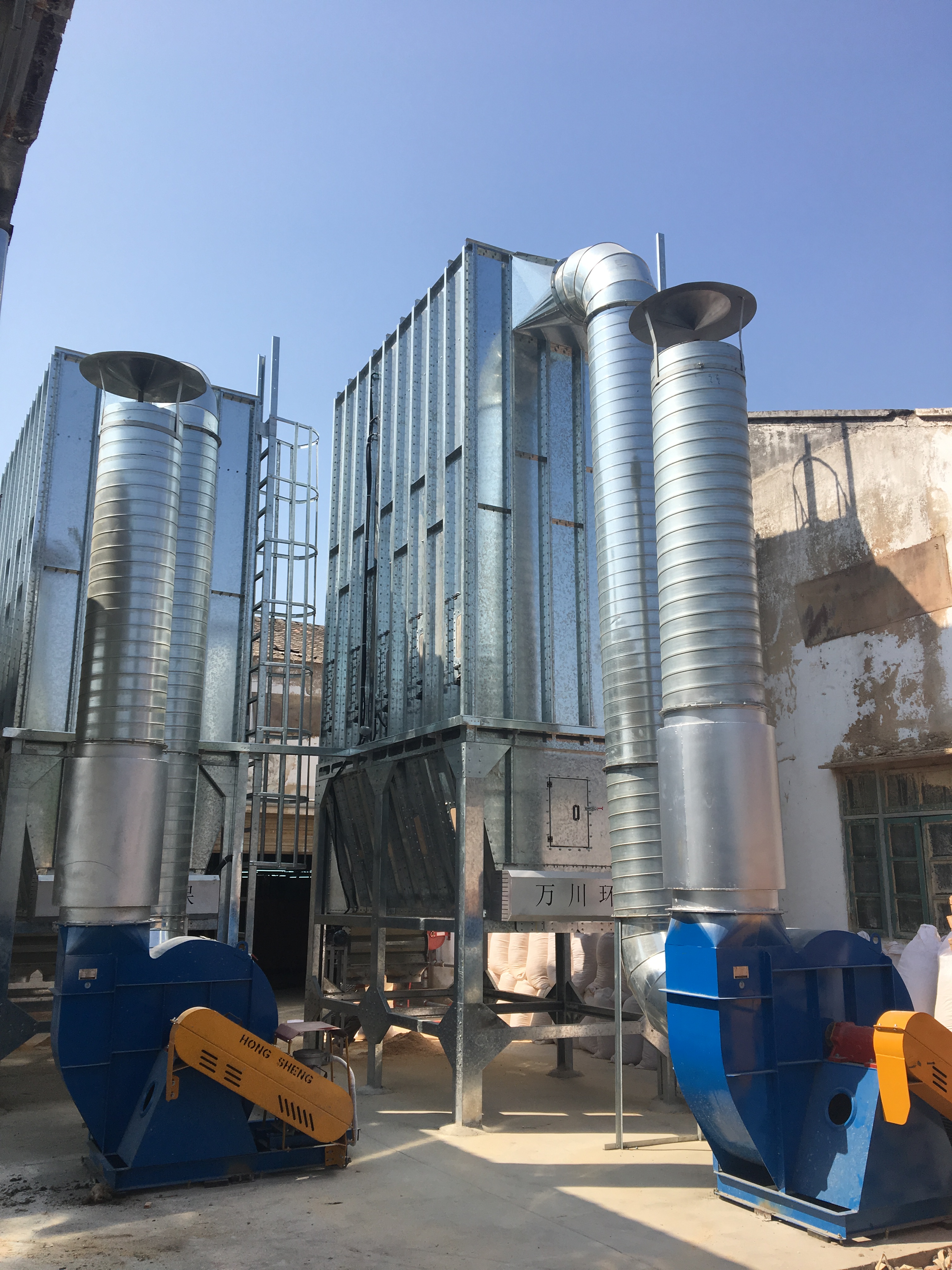 根據(jù)車間設(shè)備布置情況,由于木工機(jī)械吸塵口所需的風(fēng)量及風(fēng)壓、風(fēng)速要達(dá)到要求,并預(yù)留一些風(fēng)量,因此我們采用過(guò)濾能力較強(qiáng)脈沖袋式除塵器,匹配相應(yīng)的排塵風(fēng)機(jī),達(dá)到最佳吸塵效果。