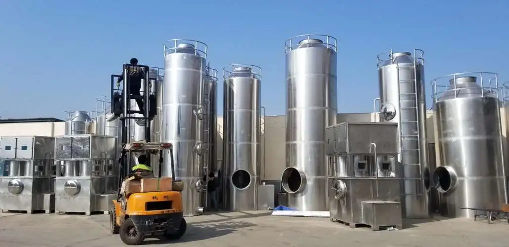 萬川環保根據酸堿廢氣腐蝕性強的特點采用不銹鋼材質的噴淋塔,加入氫氧化鈉吸收液或稀硫酸吸收液,氣液接觸,即可對酸堿廢氣進行中和后達標排放。