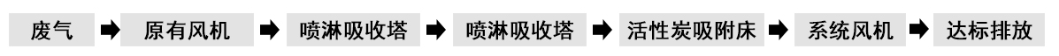 根據(jù)客戶需求和我司實地考察之后,最終采用‘兩級噴淋吸收法+活性炭吸附法’對其進(jìn)行處理。采用水噴淋一方面可以降溫,另一位方面能夠讓水吸收一部分的有機(jī)廢氣,降低后續(xù)活性炭吸附的負(fù)荷。
